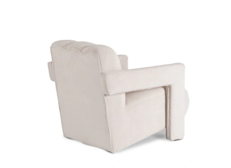Ten fotel pięknie komponuje się z toaletkami glamour, nowoczesnymi, minimalistycznymi i soft luxury. Dodaje wnętrzu przytulności i elegancji, sprawiając, że codzienna rutyna staje się małym rytuałem luksusu.