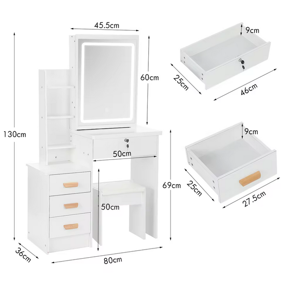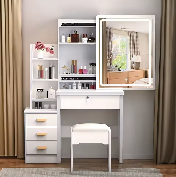 Zamień swoją sypialnię w perfekcyjnie zorganizowany kącik beauty! Ta niezwykle pojemna toaletka z oświetleniem LED łączy w sobie maksymalną funkcjonalność, elegancki design oraz ogromną ilość przestrzeni do przechowywania. Idealna dla kobiet, które kochają porządek, styl i wygodę na co dzień.