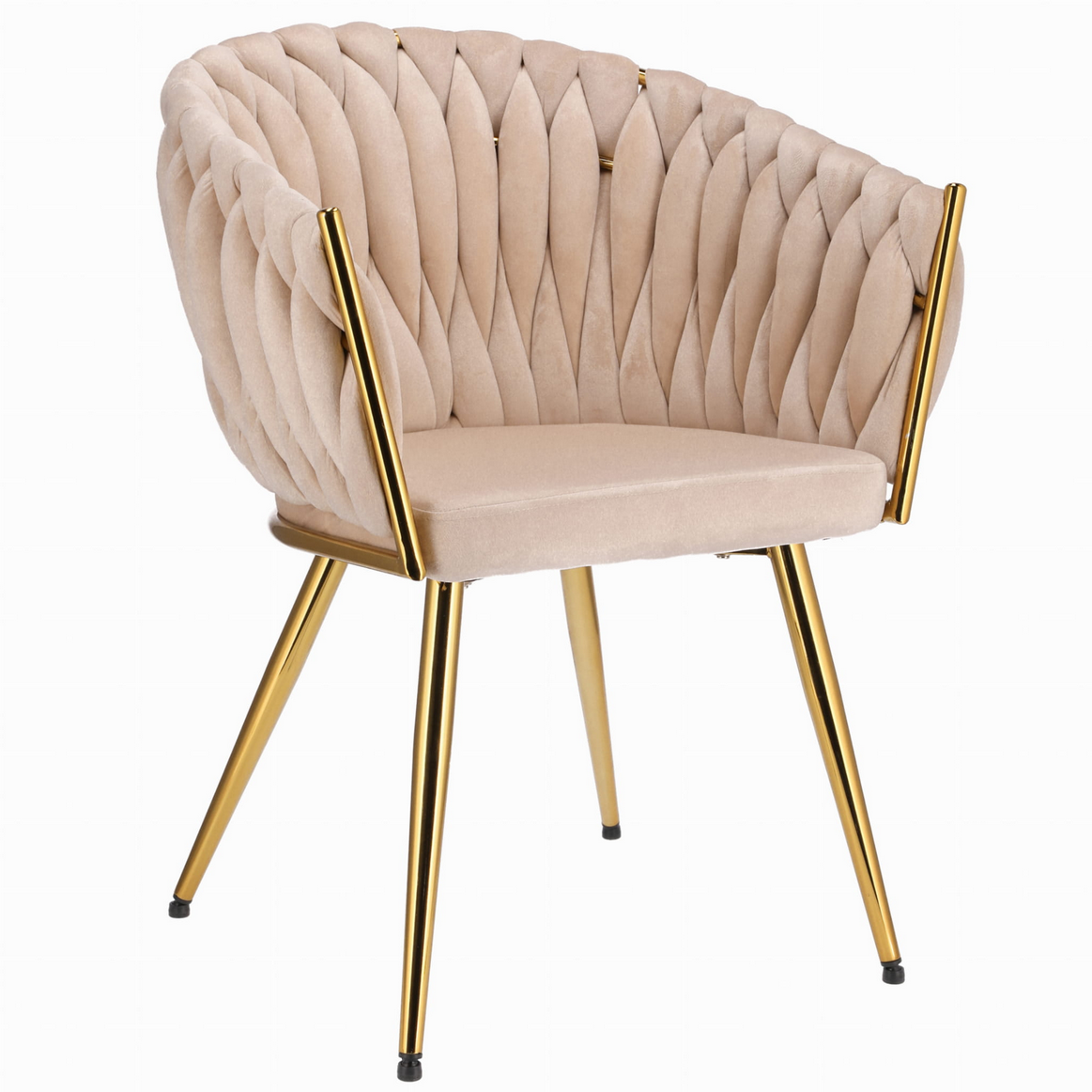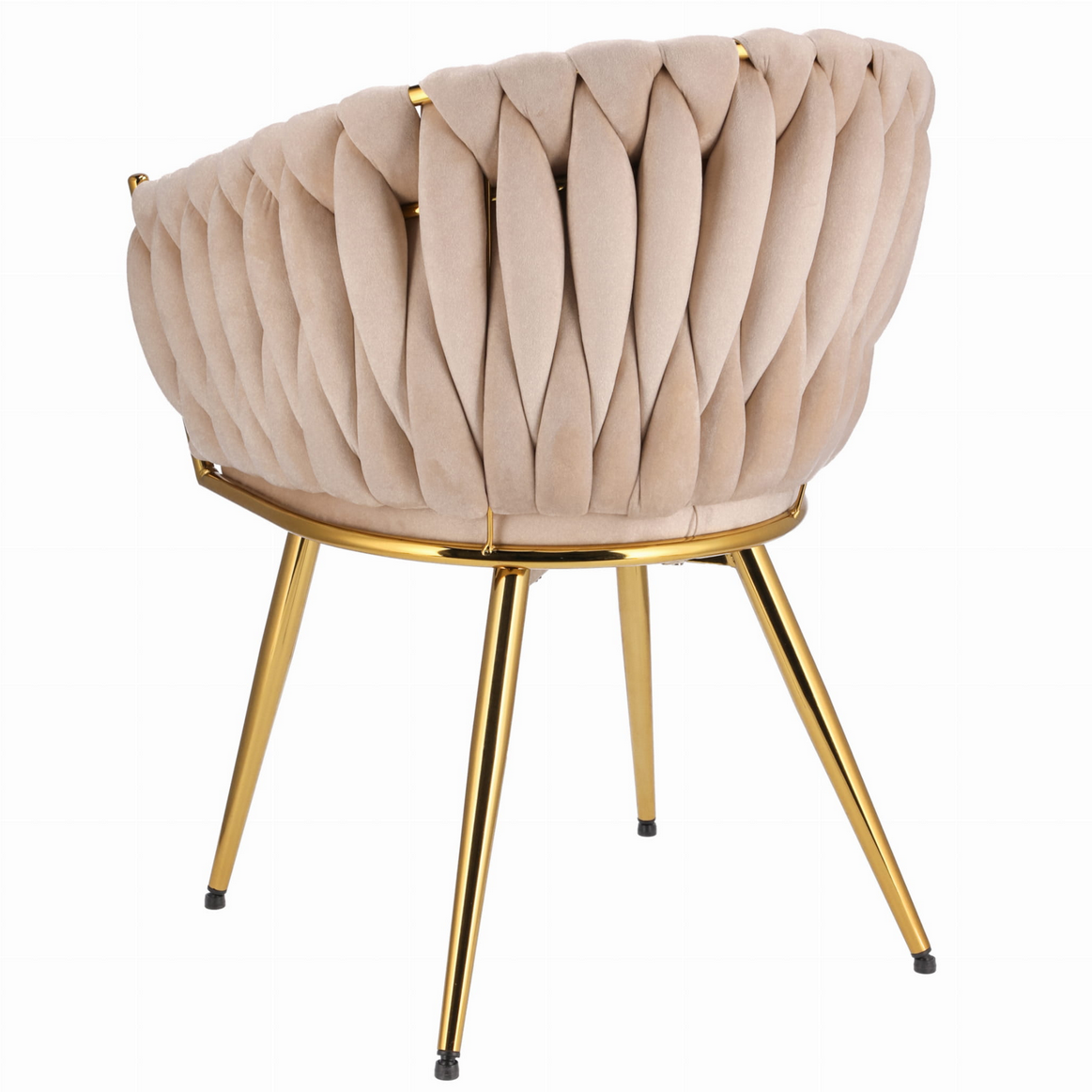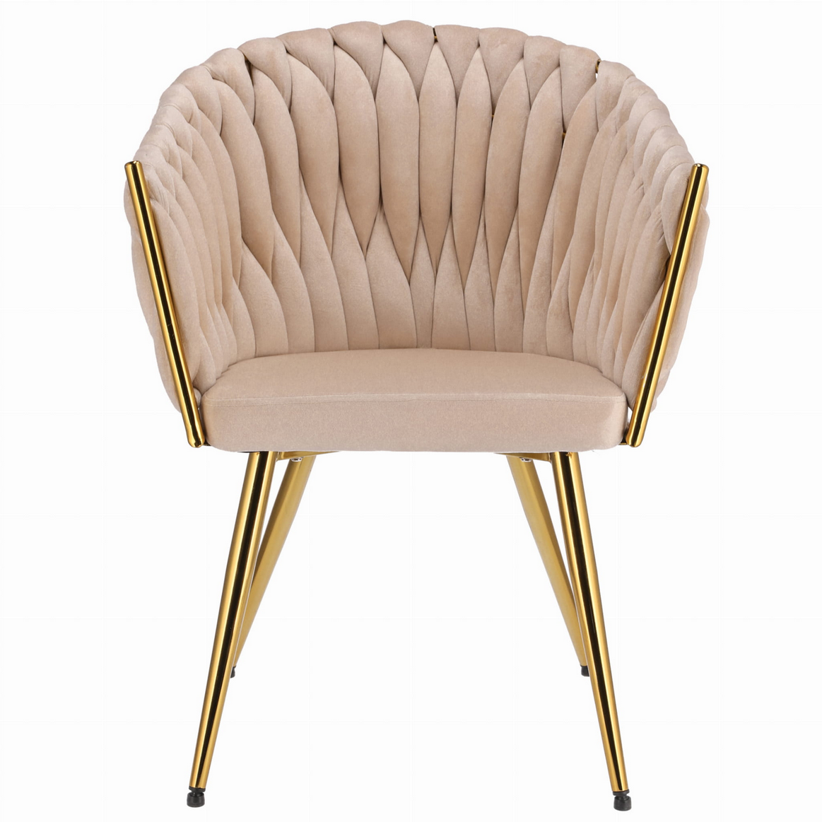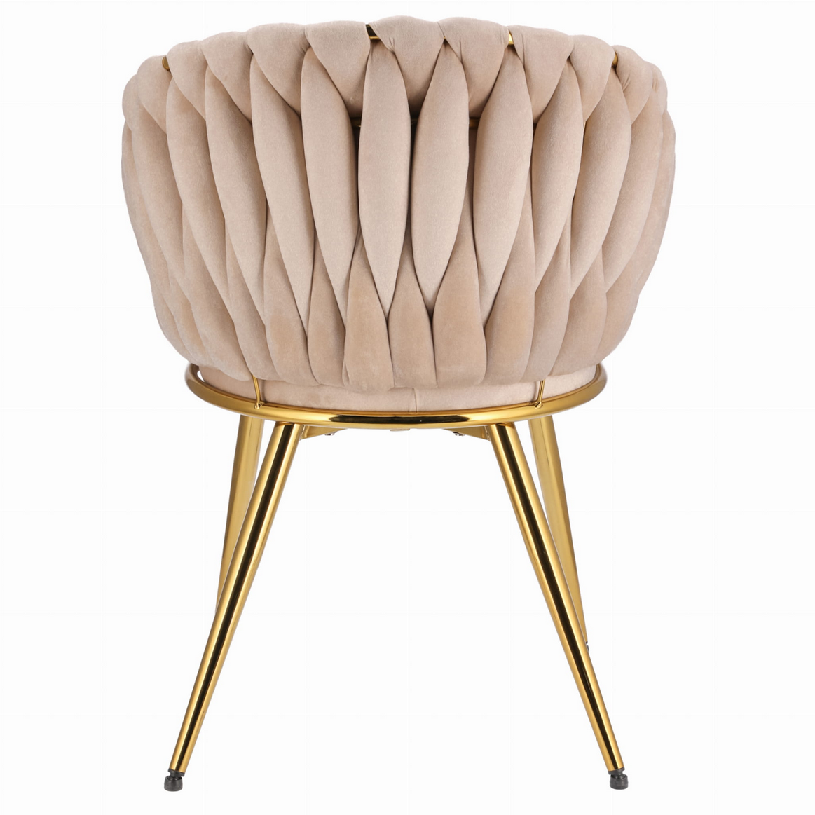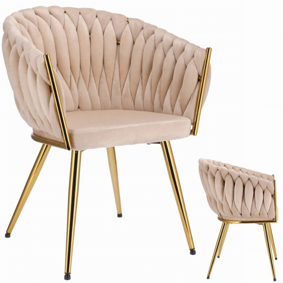 Dodaj swojej przestrzeni odrobinę luksusu dzięki temu niezwykłemu krzesłu glamour, które łączy elegancję, kunszt wykonania i niepowtarzalny design. Ten model zachwyca już na pierwszy rzut oka – od miękkiego welurowego obicia, przez misternie plecione oparcie, aż po błyszczące złote wykończenia.