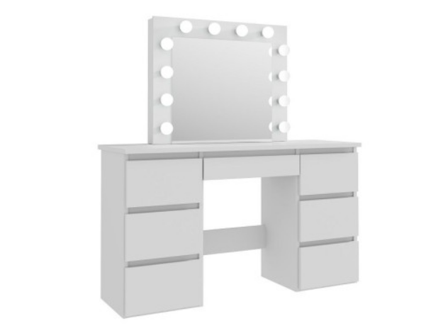 Elegancka toaletka w stylu Hollywood z dużym lustrem i oświetleniem – biała, z pojemnymi szufladami
