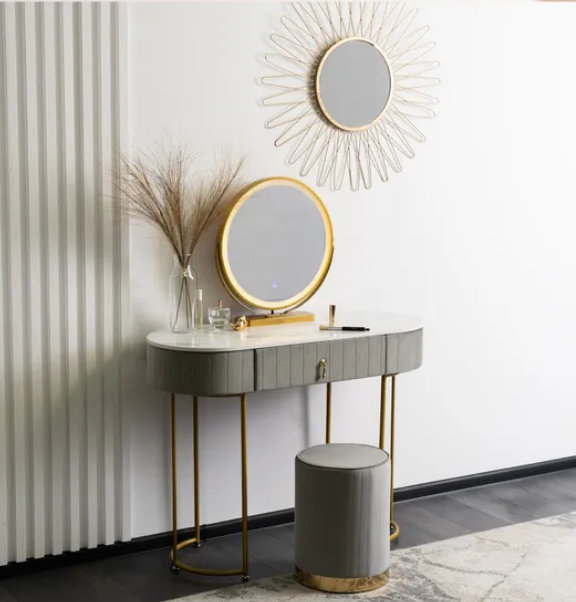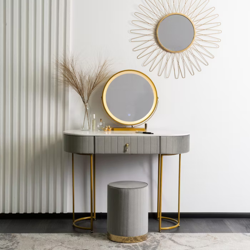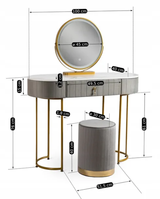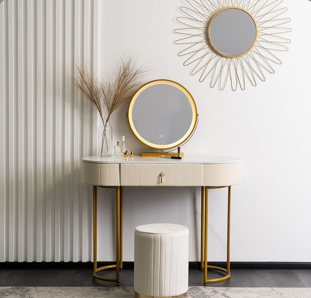 Elegancka Toaletka z Lustrem LED i Taboretem – Model ASHLEY