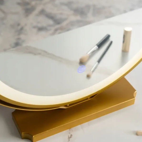 Centralnym punktem toaletki jest duże, okrągłe lustro otoczone delikatnym podświetleniem LED. Idealne do wykonywania makijażu nawet przy słabym oświetleniu. Podświetlenie dodaje również wnętrzu klimatu i subtelnego blasku.