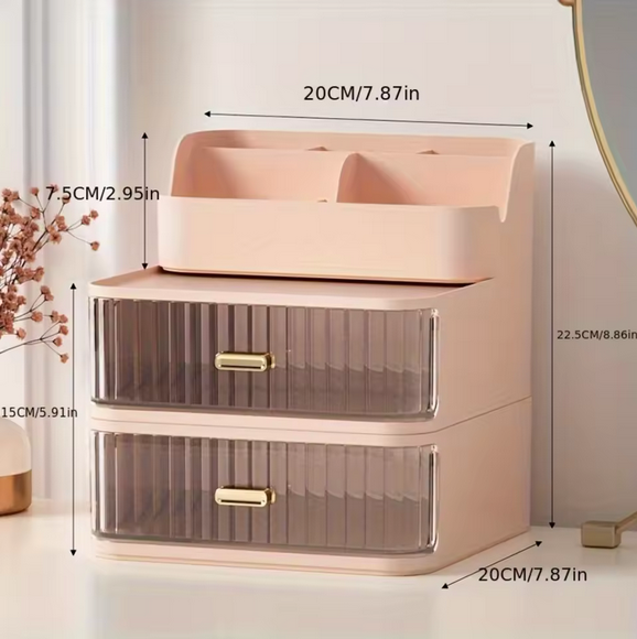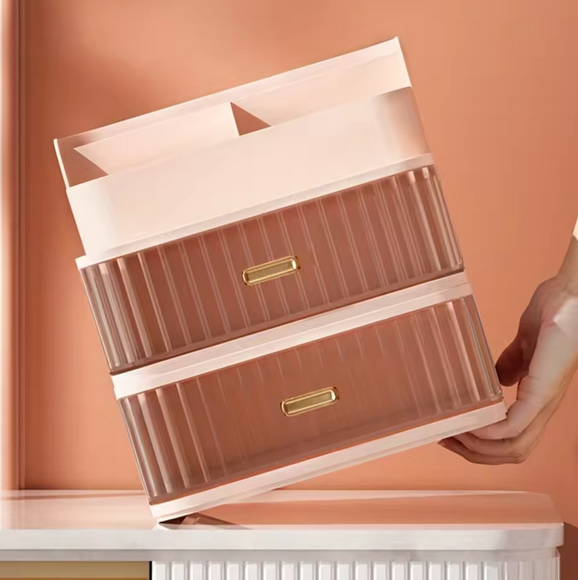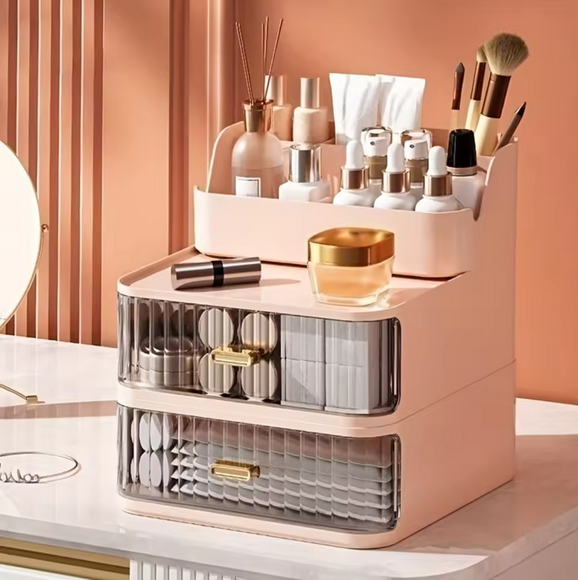 Elegancki organizer kosmetyczny z podwójną szufladą – idealny porządek na Twojej toaletce
