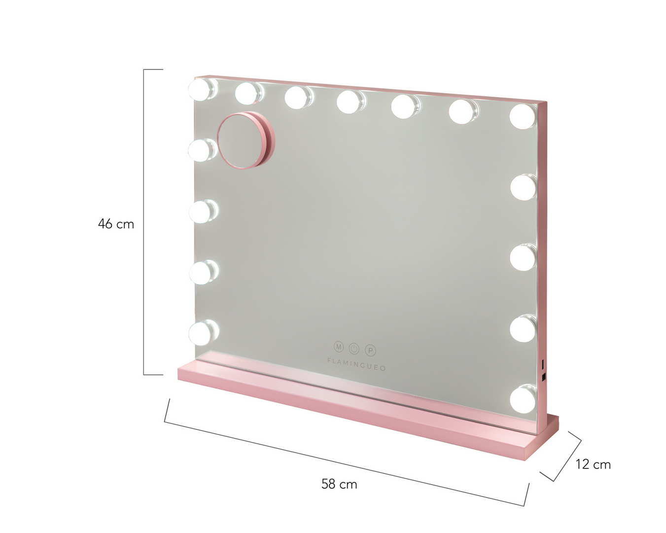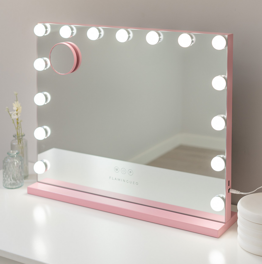 Flamingueo Lustro do Makijażu 15 LED 3 Tryby Świecenia Lustro Do Toaletki Różowy