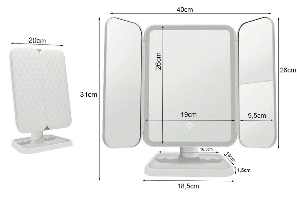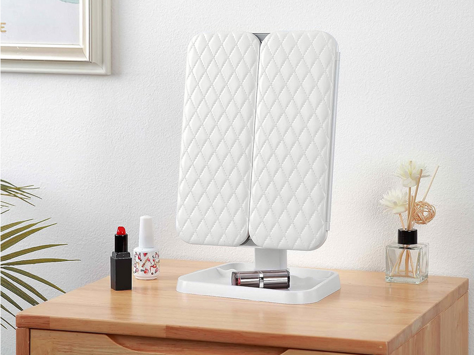 Poznaj lusterko, które odmieni Twój codzienny rytuał pielęgnacji i makijażu. Elegancki design, potrójny panel, regulowane oświetlenie LED i pikowana tekstura klap — to połączenie funkcjonalności i luksusu, które sprawia, że każde przygotowanie do wyjścia staje się przyjemnością.