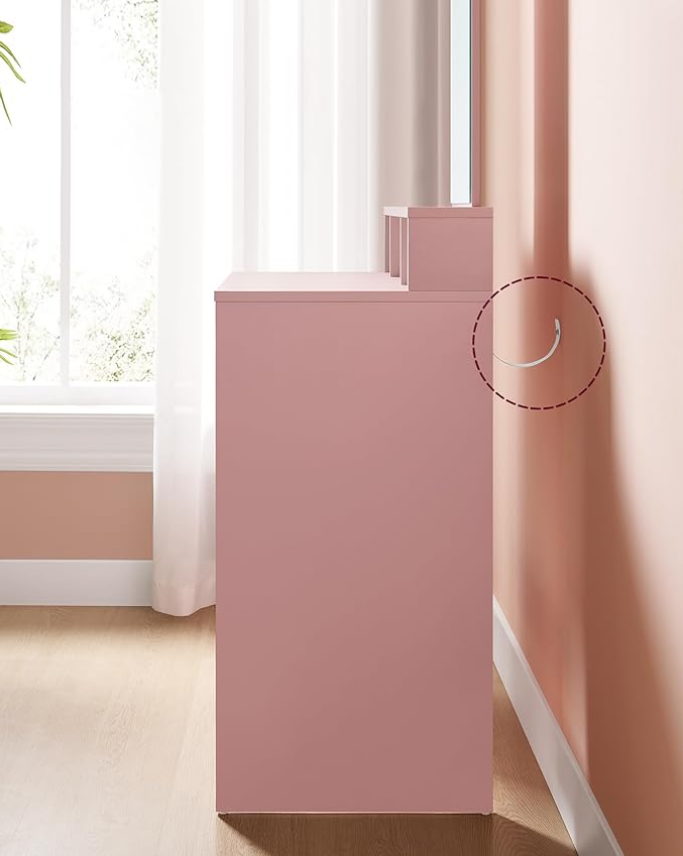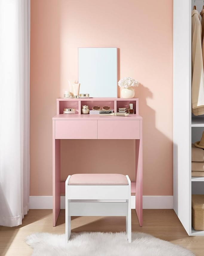 Stwórz swój własny, kobiecy kącik beauty dzięki tej stylowej toaletce w modnym, pudrowo-różowym kolorze.