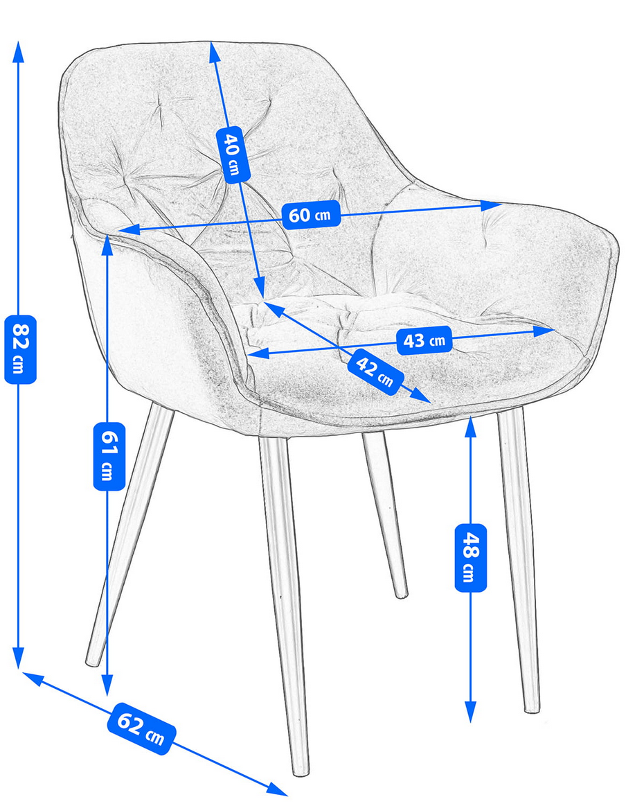 To krzesło to idealne połączenie elegancji, wygody i nowoczesnego designu. Miękki welur, głębokie pikowanie i stabilne metalowe nogi tworzą mebel, który doskonale sprawdzi się przy toaletce, w salonie, jadalni, gabinecie beauty czy stylowym biurze.