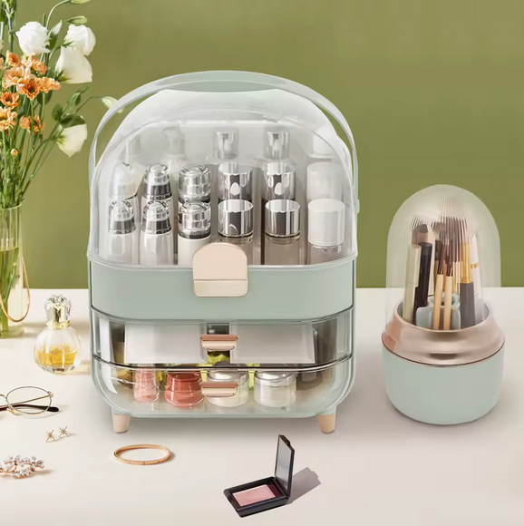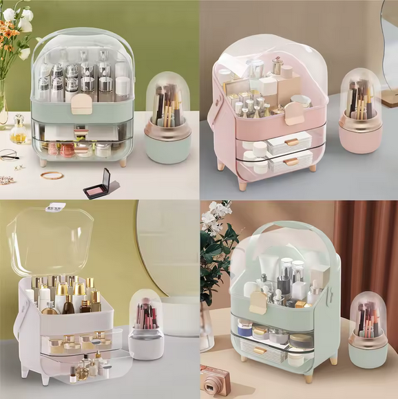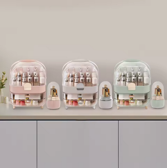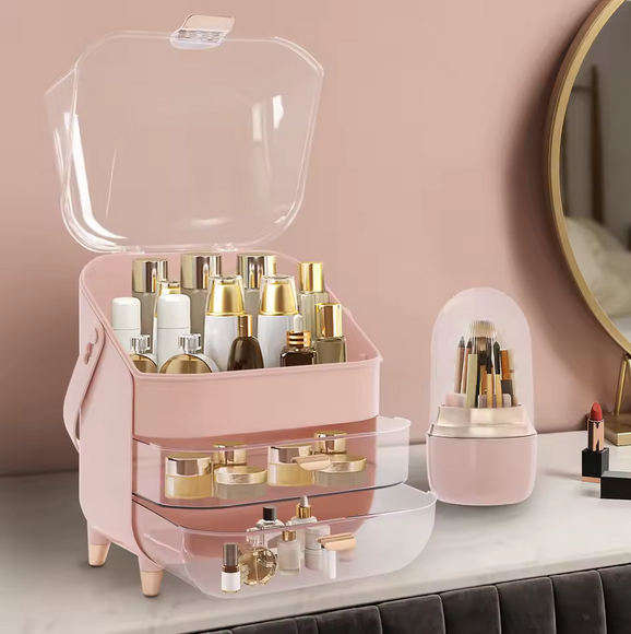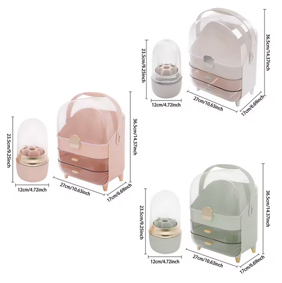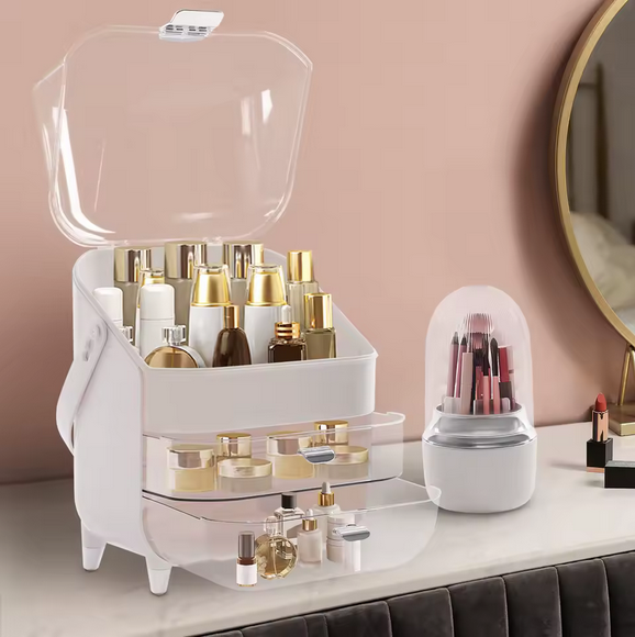Przezroczysty Organizer na Kosmetyki 3-Poziomowy – Pyłoszczelny, Pojemny i Elegancki z Mini Stojakiem na Akcesoria