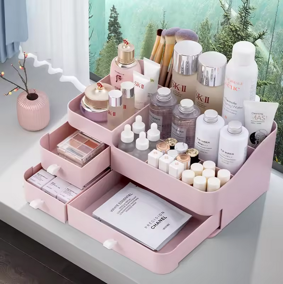 Stwórz idealny kącik beauty, w którym każdy kosmetyk ma swoje miejsce! Ten elegancki, wielopoziomowy organizer z pojemnymi szufladami został zaprojektowany dla kobiet, które cenią estetykę, porządek i wygodę na co dzień.