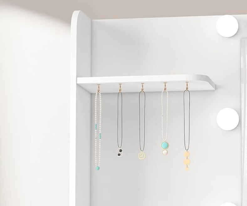Wyposażona w aż 7 szuflad, 6 półek, 5 haczyków i duże lustro z lampkami LED, gwarantuje idealną organizację oraz komfort, jakiego nie daje żaden podstawowy model.