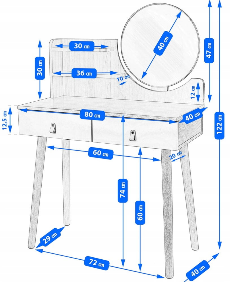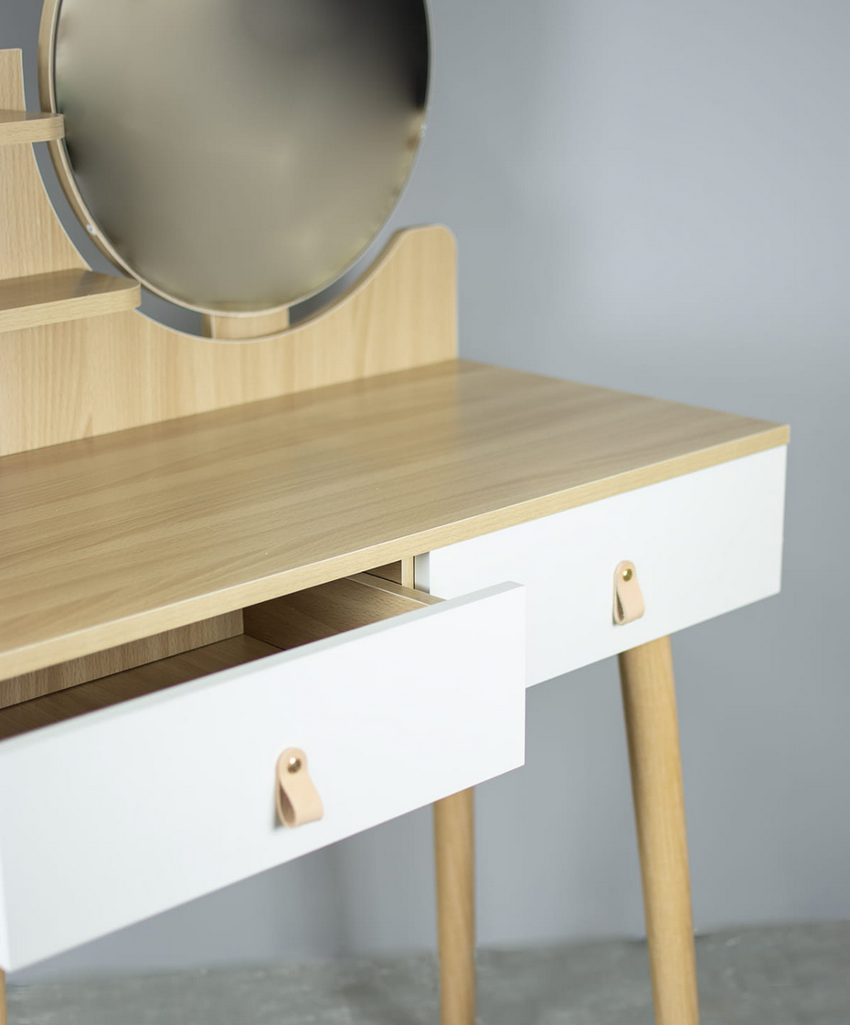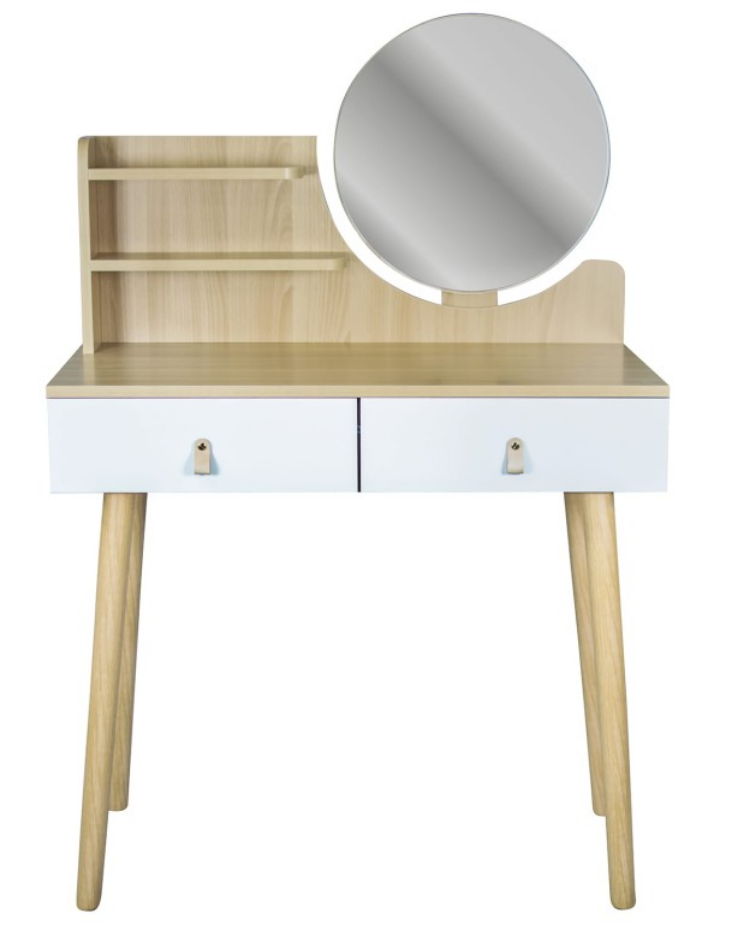 Toaletka kosmetyczna z lustrem - SCANDI biała / buk