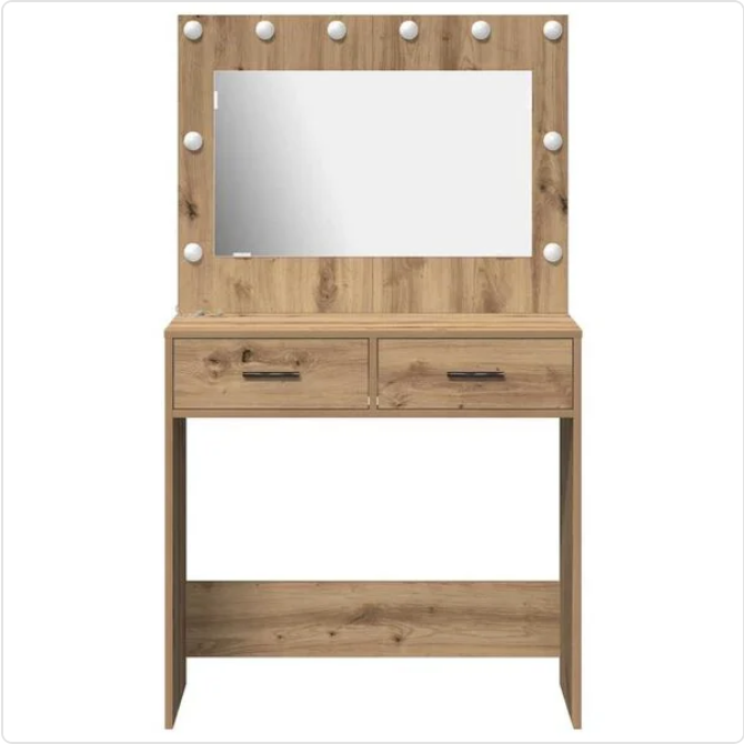 Toaletka z Lustrem LED Dąb Artisan – Nowoczesna Konsola z Szufladami i Przegródkami na Kosmetyki